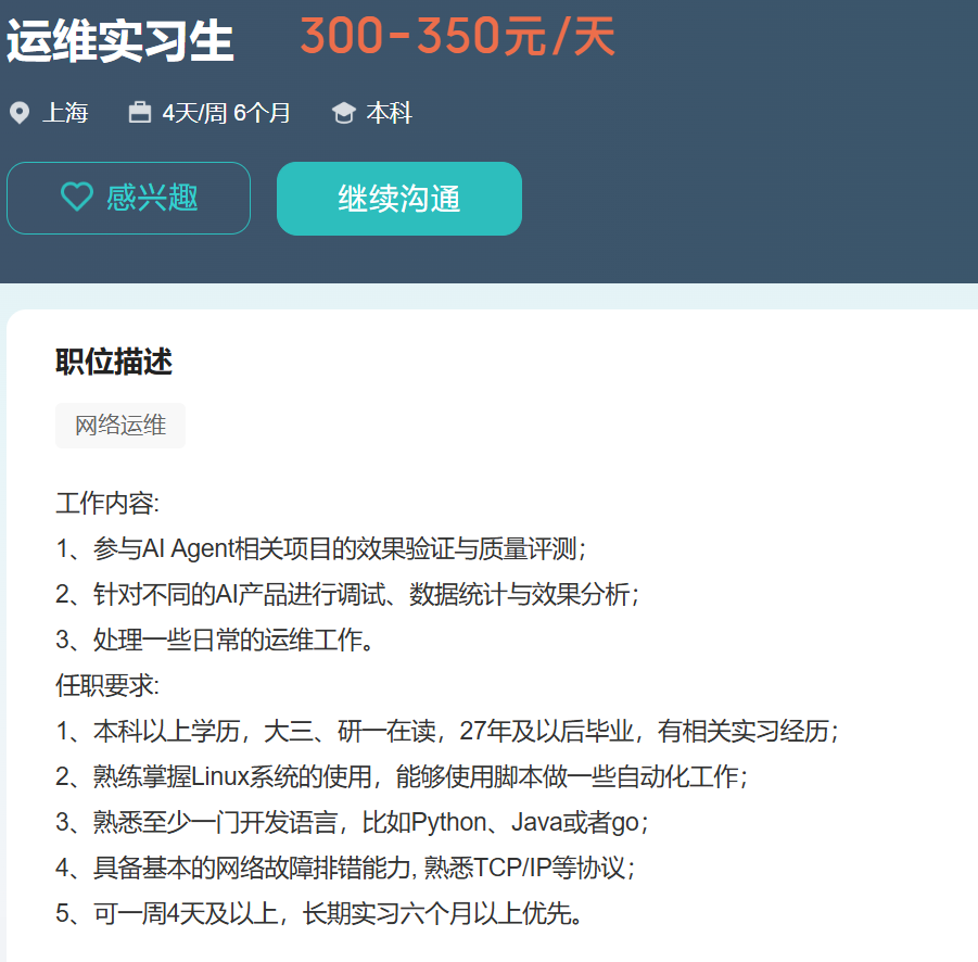 应该是挂了,面试完之后回Boss上看了一眼确实是运维实习生,为什么问了这么多Java开发相关问题呢?